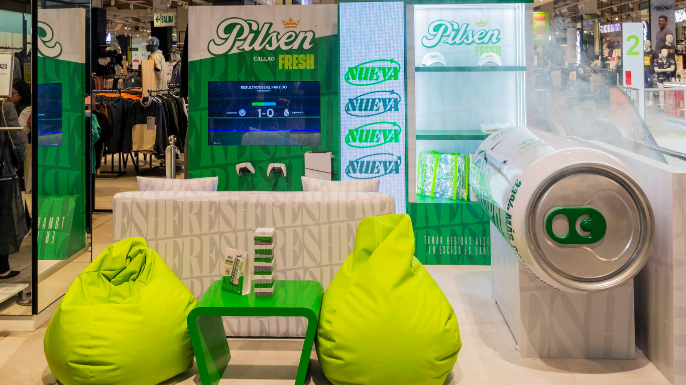 Este nuevo spot es la pausa necesaria en tu día de compras: un espacio diseñado para disfrutar de degustaciones de producto, divertirte con juegos interactivos y adquirir el merch oficial de Pilsen Fresh.